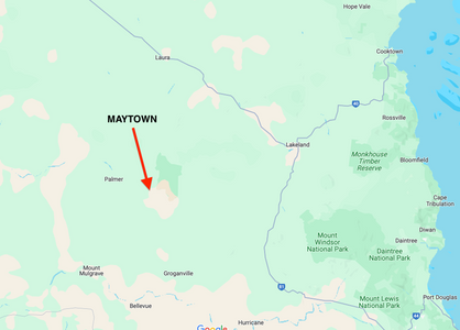 Maytown and the Palmer River Goldfields are in Cape York in far north Queensland. Once known as Australia's largest and richest goldfields, it is now a remote, deserted, isolated region where a 4WD is necessary to explore. Nearly 600 km north of Cairns, there is plenty to see and do for the avid adventurer, gold hunter and historian.